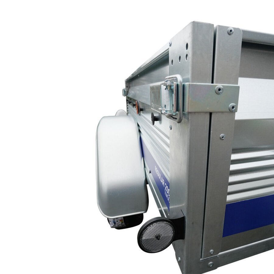 La REGULAR 200 est aussi ultrarésistante grâce à son plancher bois monobloc renforcé par des traverses sous le châssis et grâce à ses ridelles nervurées doublées avant et arrière. Les feux 6 fonctions sont également renforcés et antichocs amortissant ainsi les erreurs de manœuvre.