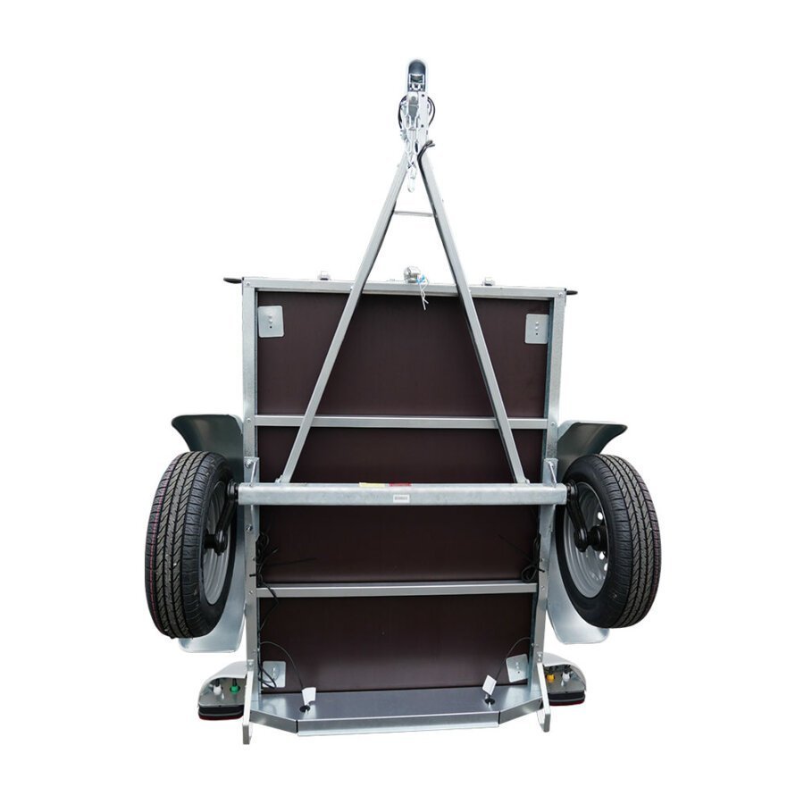 La remorque REGULAR 200 1M50 est équipée d’une flèche en « V » qui augmente la rigidité du châssis et améliore la tenue de route par rapport au timon droit. La présence de roues 13 pouces accroit également la stabilité et la tenue de route. Les pieds de stockage assurent un rangement vertical de la remorque pour un gain de place dans votre garage.
